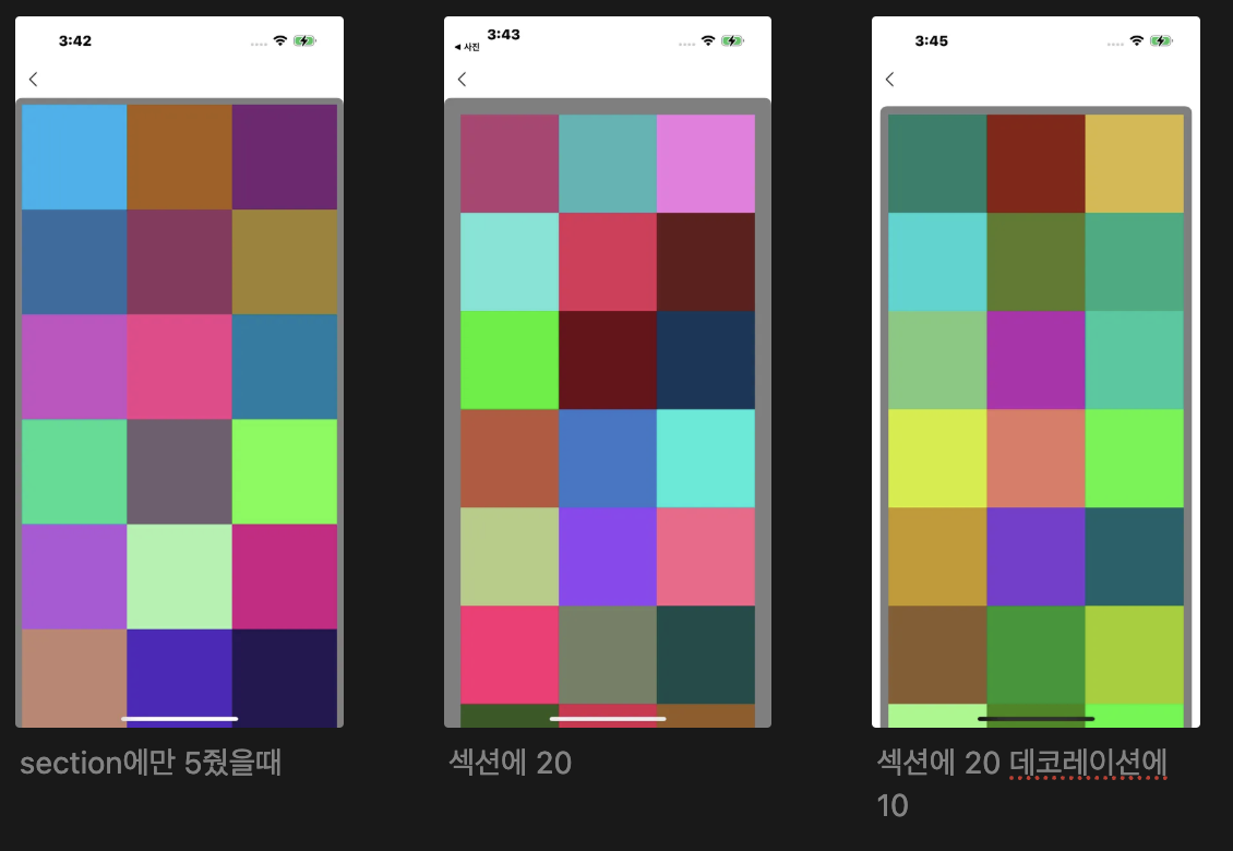 ✅ Compositional Layout의 철학에 부합 섹션을 스크롤 가능한 하나의 단위로 만들고도, 커스터마이징이 가능 ✅ layout 전용 → 레이아웃 기반의 애니메이션, zoom, snap 등 구현에 유리 ✅ 중첩 스크롤 없음 단일 UICollectionView 내에서 구성이기 때문에 스크롤 충돌이 발생할 이슈가 없습니다. - 단점항목 설명