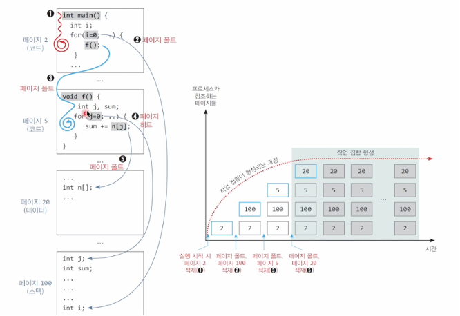 그래서 페이지 폴트는 작업집합을 메모리에 적재하는 과정을 의미한다.