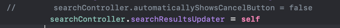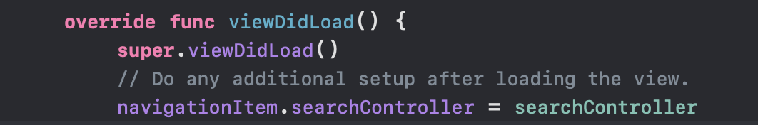 그리고 viewdidLoad에 searchResultsUpdater를 채택해준다.
