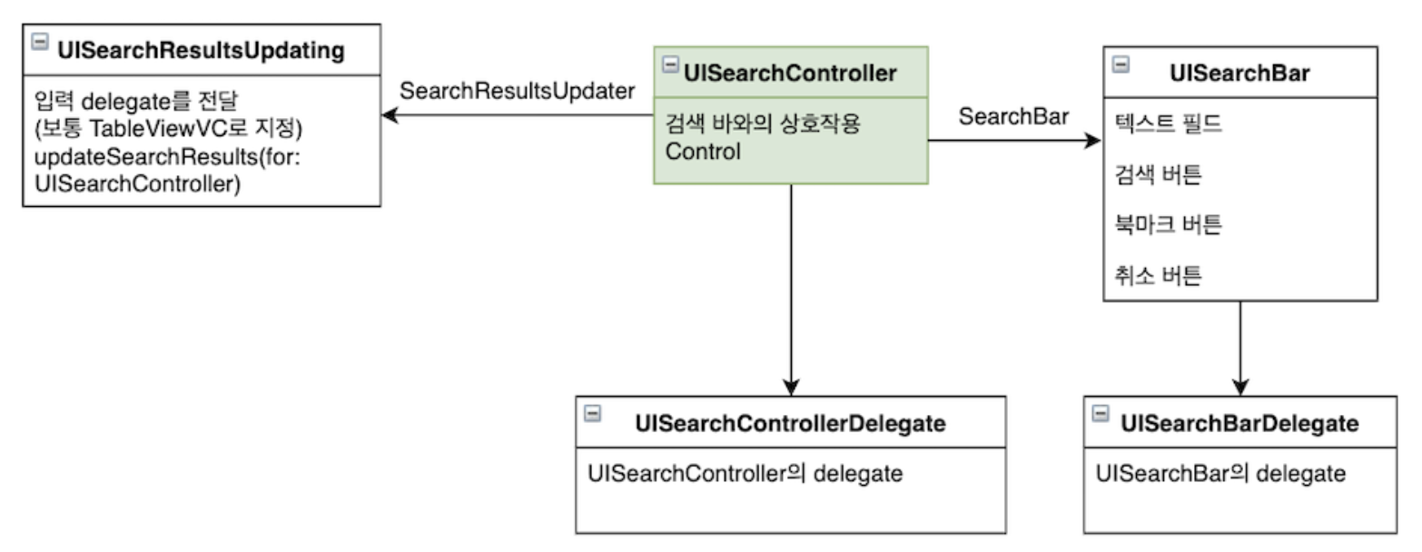 - 즉 UISearchBar와의 큰 차이점은 “결과를 보여주는가 아닌가” 에 대한 것이다.
